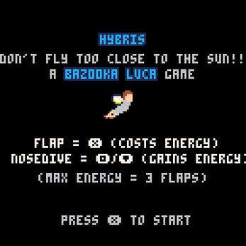 Hybris is an arcade style, auto-scrolling, action runner game, where you play as Icarus, the pride but utterly bored son of Dedalus who wants nothing more than to finally escape. Prove your flying skills by continuously dancing on the edge between being burned by the sun or drowning in the ocean while dodging obstacles coming your way. Flap, dodge and dive your way through a never ending parkour above the Aegean Sea.